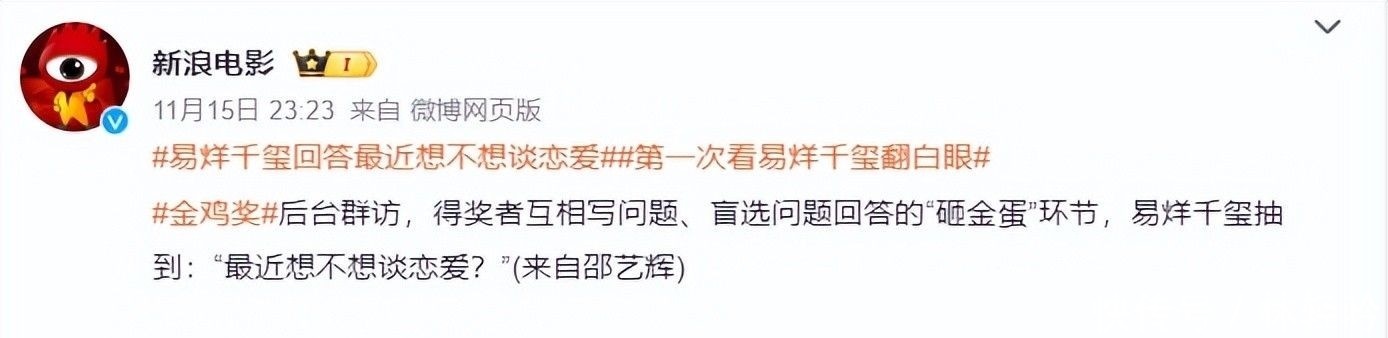 19. 原来是后台采访中被问及“有没有谈恋爱打算”,他下意识翻了个无奈的眼珠,神情略显窘迫。