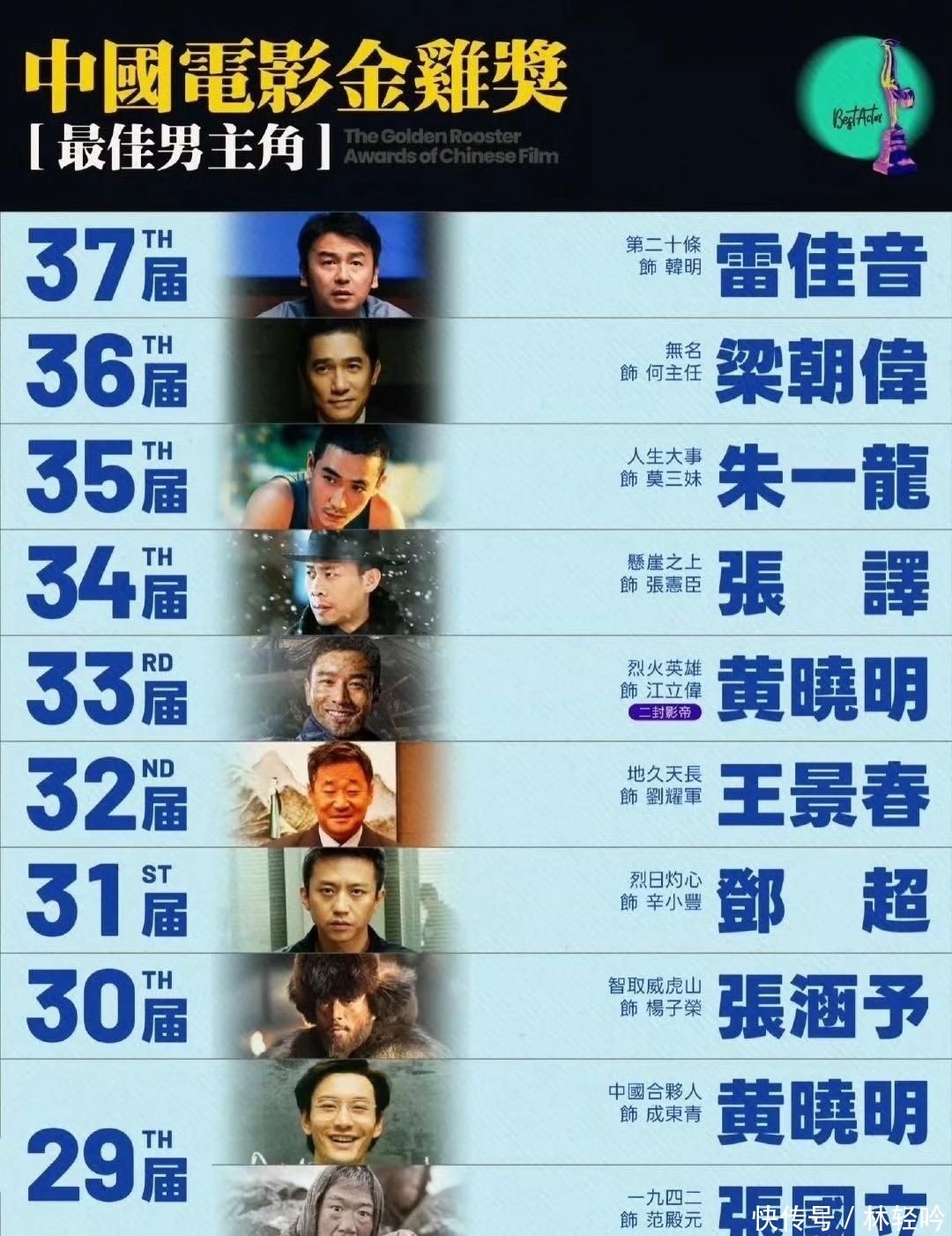 12. 纵观近五年金鸡奖最佳男主得主年龄变化,从最初的38岁一路下滑至今年的24岁,这种断崖式年轻化趋势,堪称比火箭升空还要迅猛。