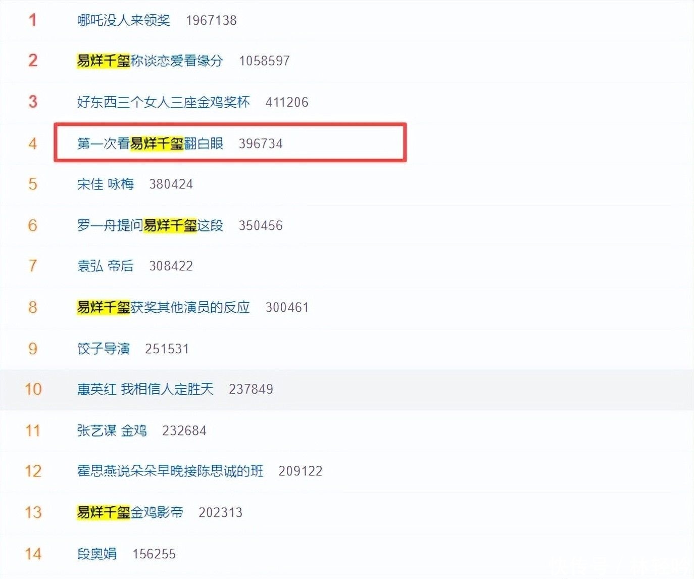 18. 就在他捧奖的次日,“易烊千玺白眼”突然冲上热搜第四位。